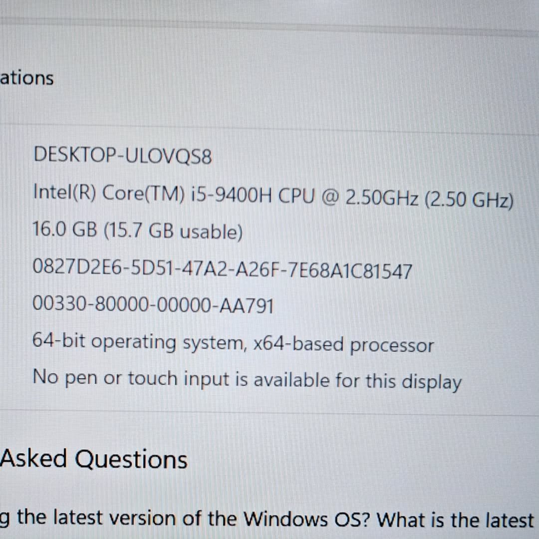 Intel® Core™ i5-9400H 9th Gen Quad-core Processor 12M Cache, up to 4.60 GHz |