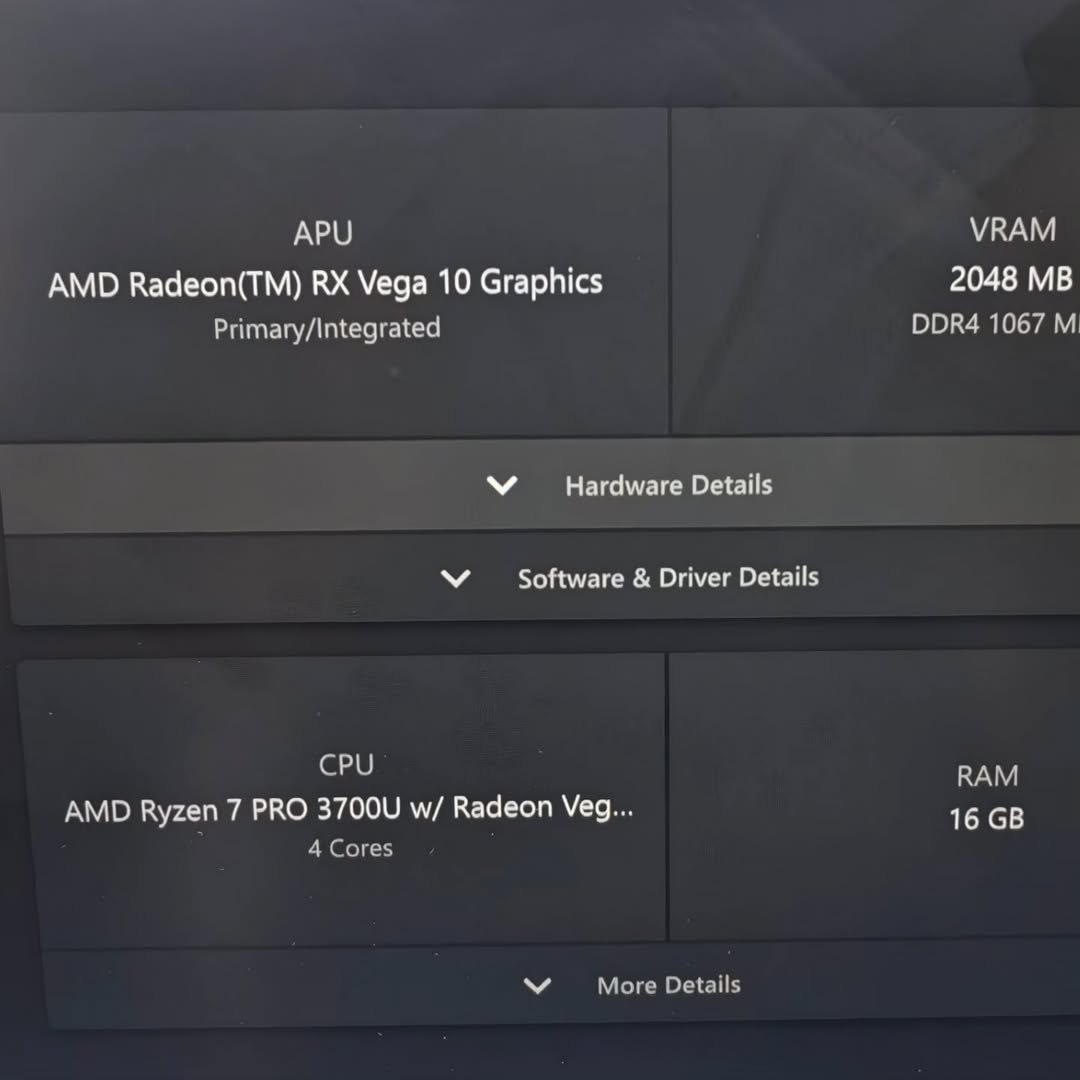 Video Card | 2GB Dedicated AMD Radeon(TM) Vega 8 Graphics |